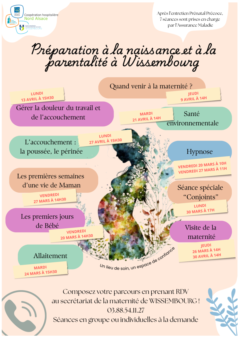 Les futurs parents peuvent choisir les séances selon leurs besoins parmi les thématiques proposées.